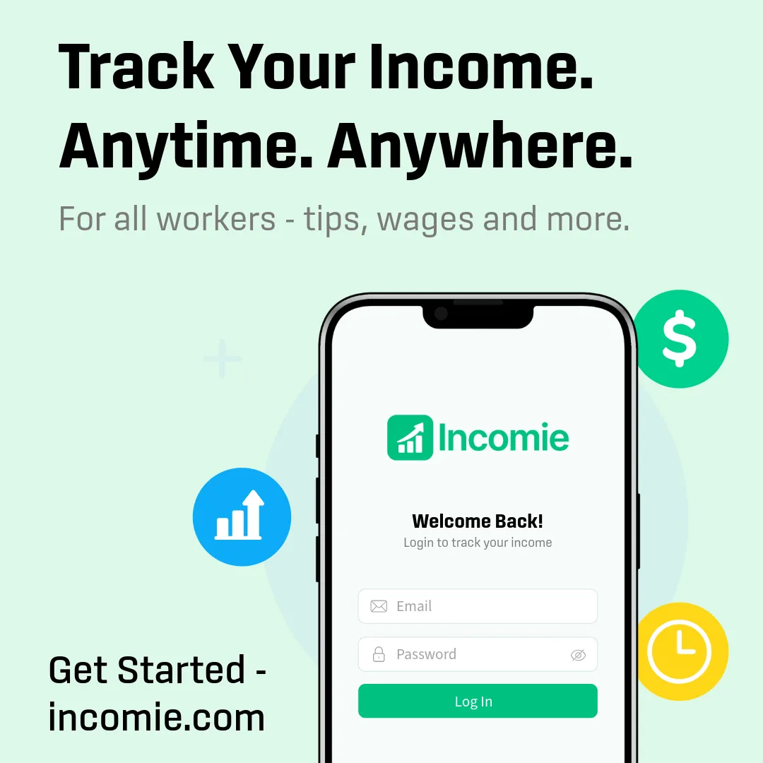 Incomie helps you take control of your work and your earnings — built for the way you actually get paid. It’s free, secure, and made for service workers like you.