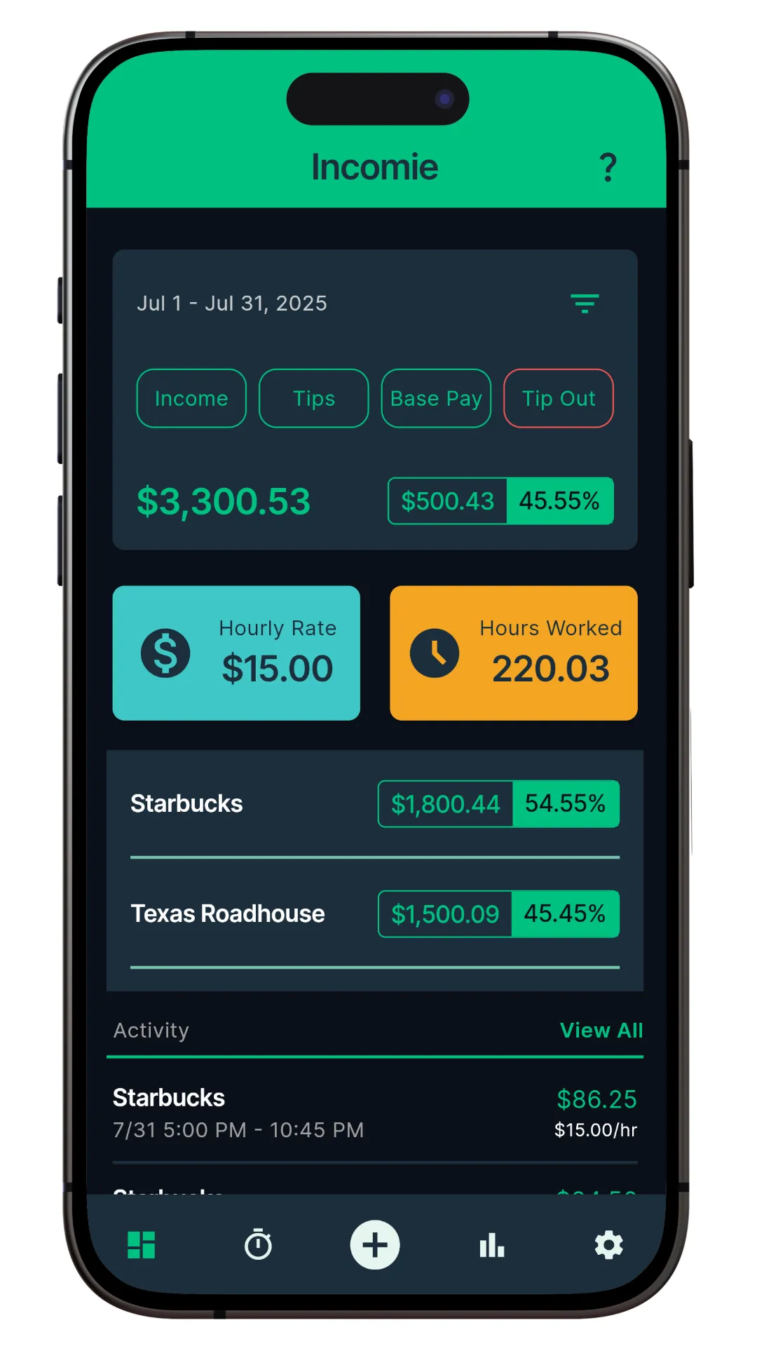 Incomie helps hourly and service workers take control of their earnings by tracking shifts, tips, and payouts in one easy-to-use app.